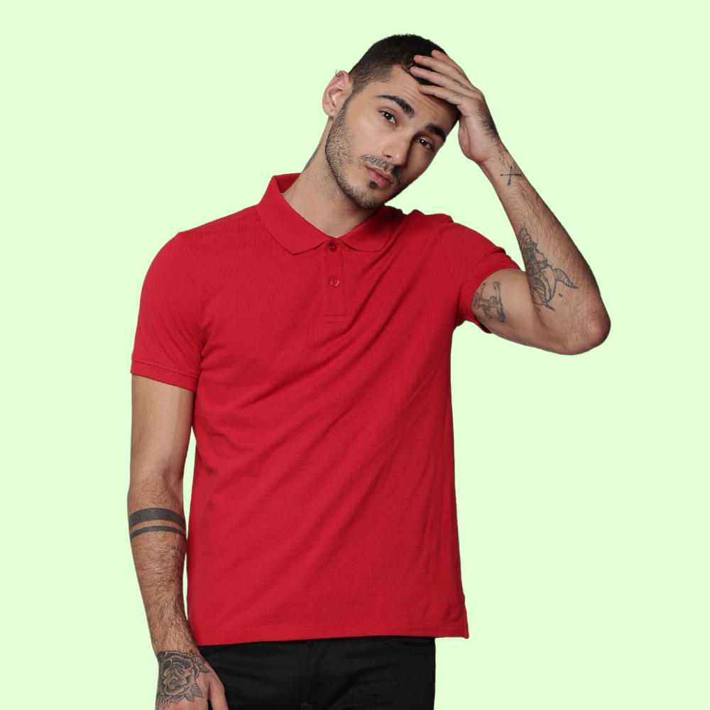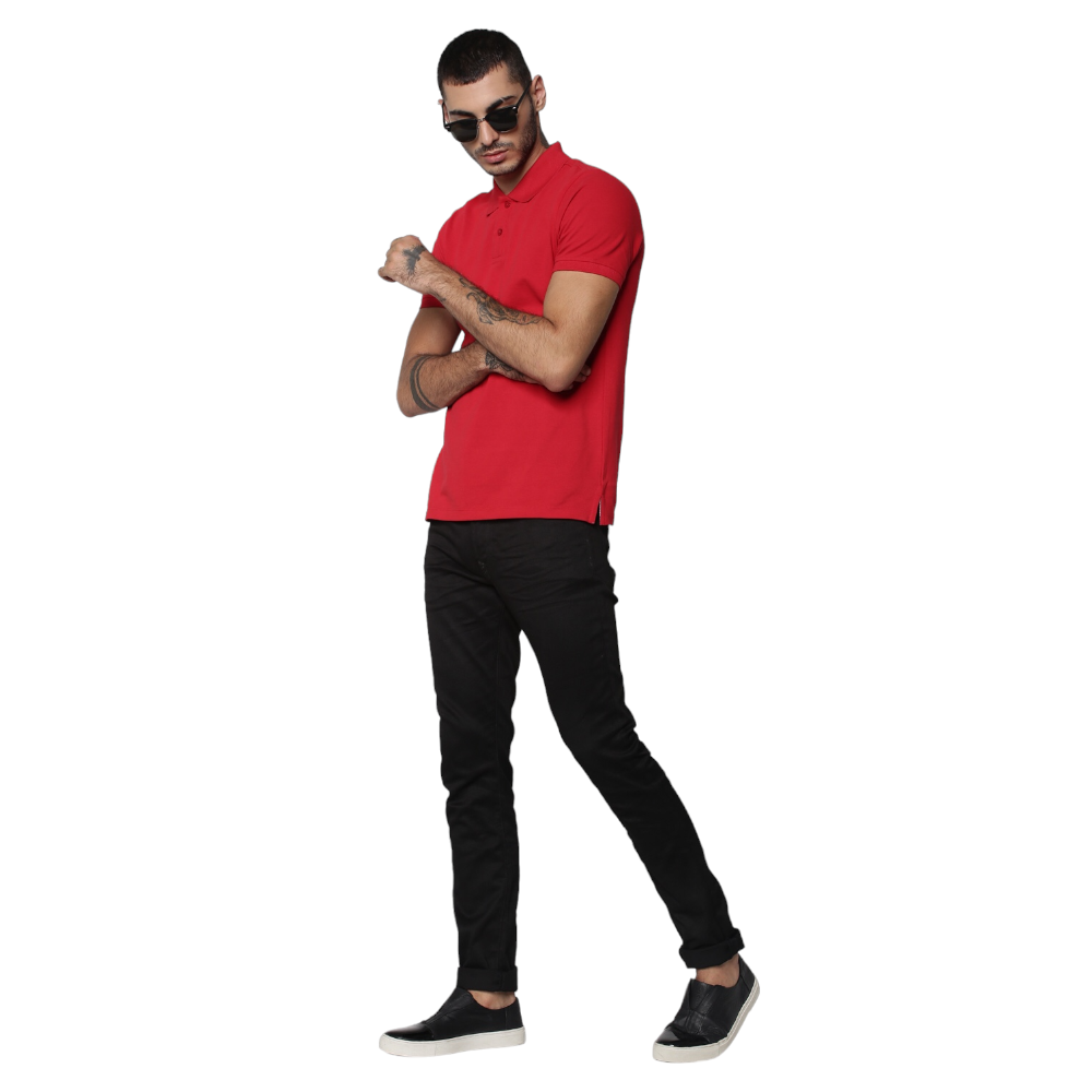 Experience style and comfort with this premium Jack&Jones Plain Polo T-Shirt- Red.